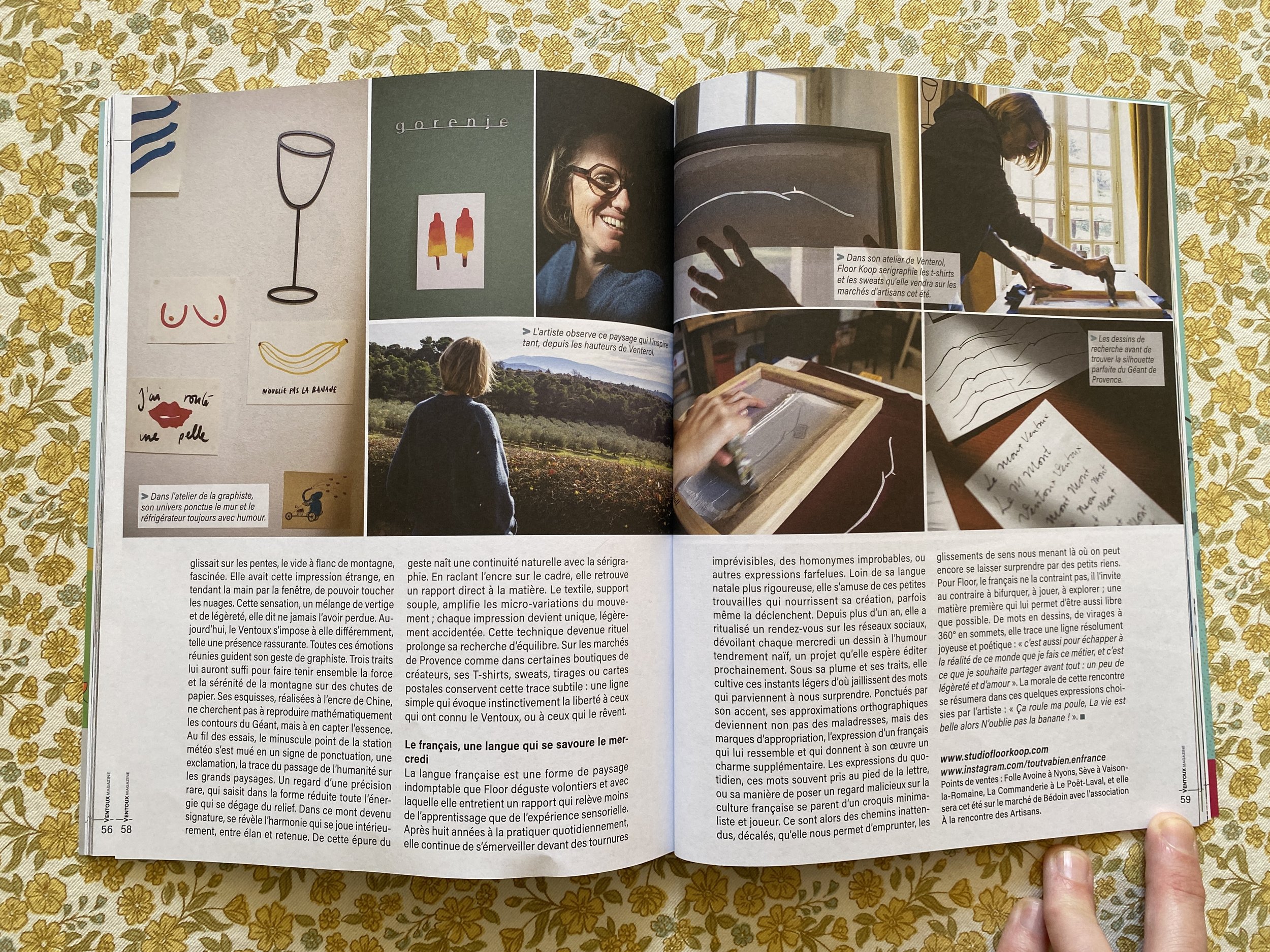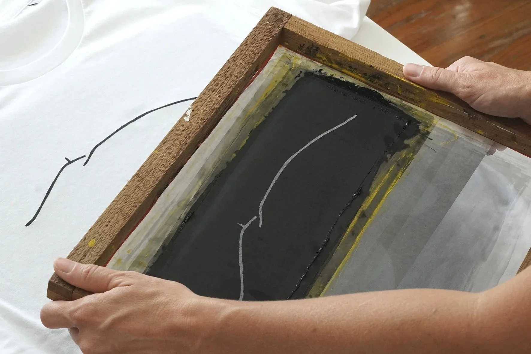 Je sérigraphie le Mont Ventoux sur des tee-shirts.